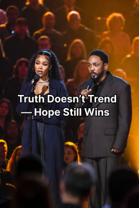 Standing beside her, Kendrick Lamar nodded quietly, later adding a brief but powerful line of his own: “Truth doesn’t trend. You have to choose it.”