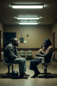 We were sitting in the hospital waiting room, waiting for discharge papers, when Liam noticed him — a man sitting quietly in the corner. He was large, bearded, with a leather vest covered in patches and tattoos down both arms. The kind of man who looked like thunder on the outside.
