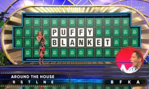 After the show provided the standard letters — R, S, T, L, N and E — Hedrick chose B, F, K and A. The puzzle soon displayed: “_ FF BLANKET.”
