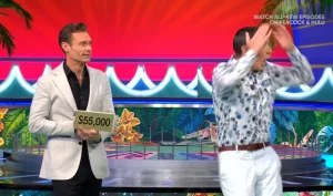 When Seacrest revealed the envelope containing $55,000, Hedrick gently shoved the host’s arm in disbelief, repeating his accusation with a laugh.