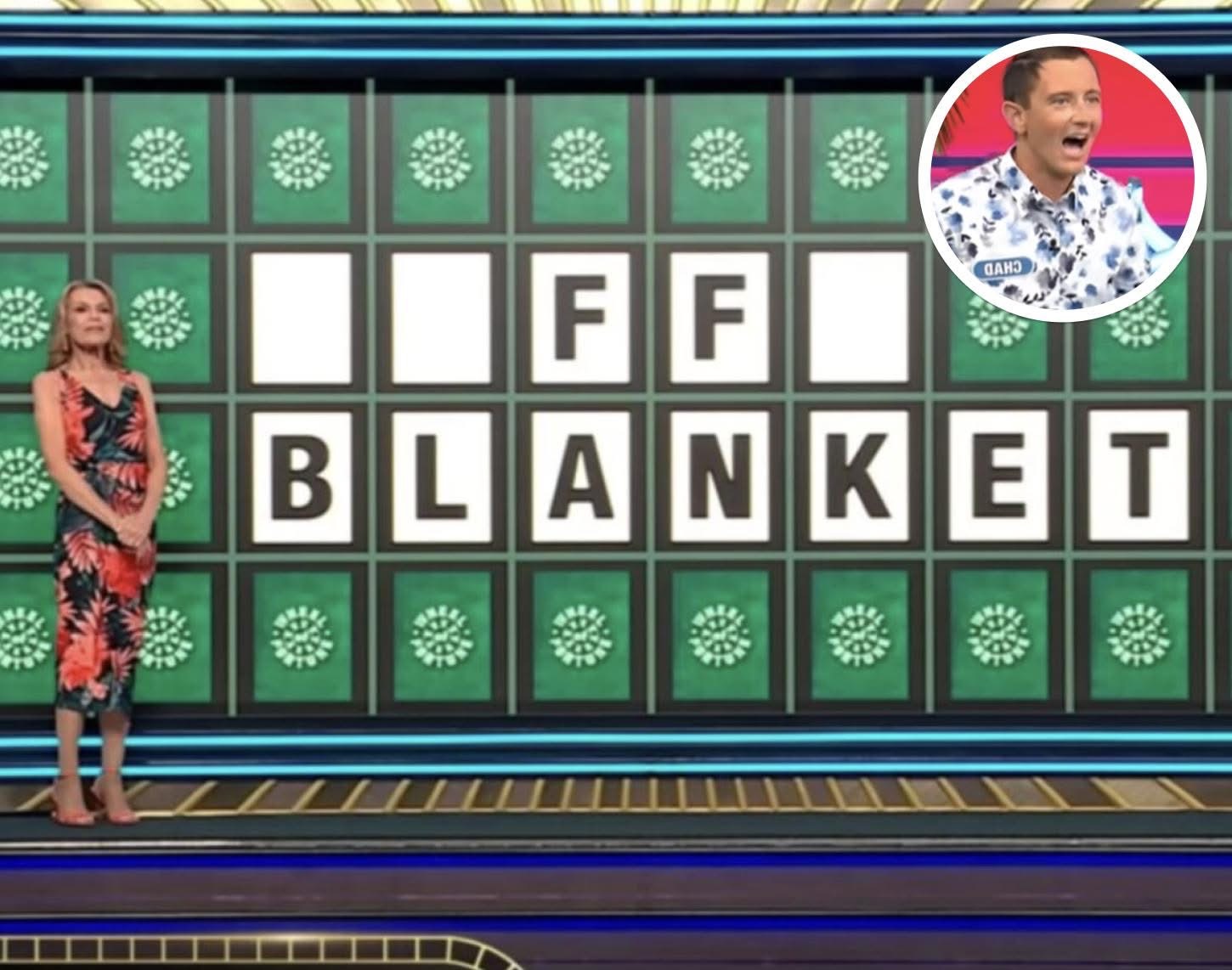 After the show provided the standard letters — R, S, T, L, N and E — Hedrick chose B, F, K and A. The puzzle soon displayed: “_ FF BLANKET.”